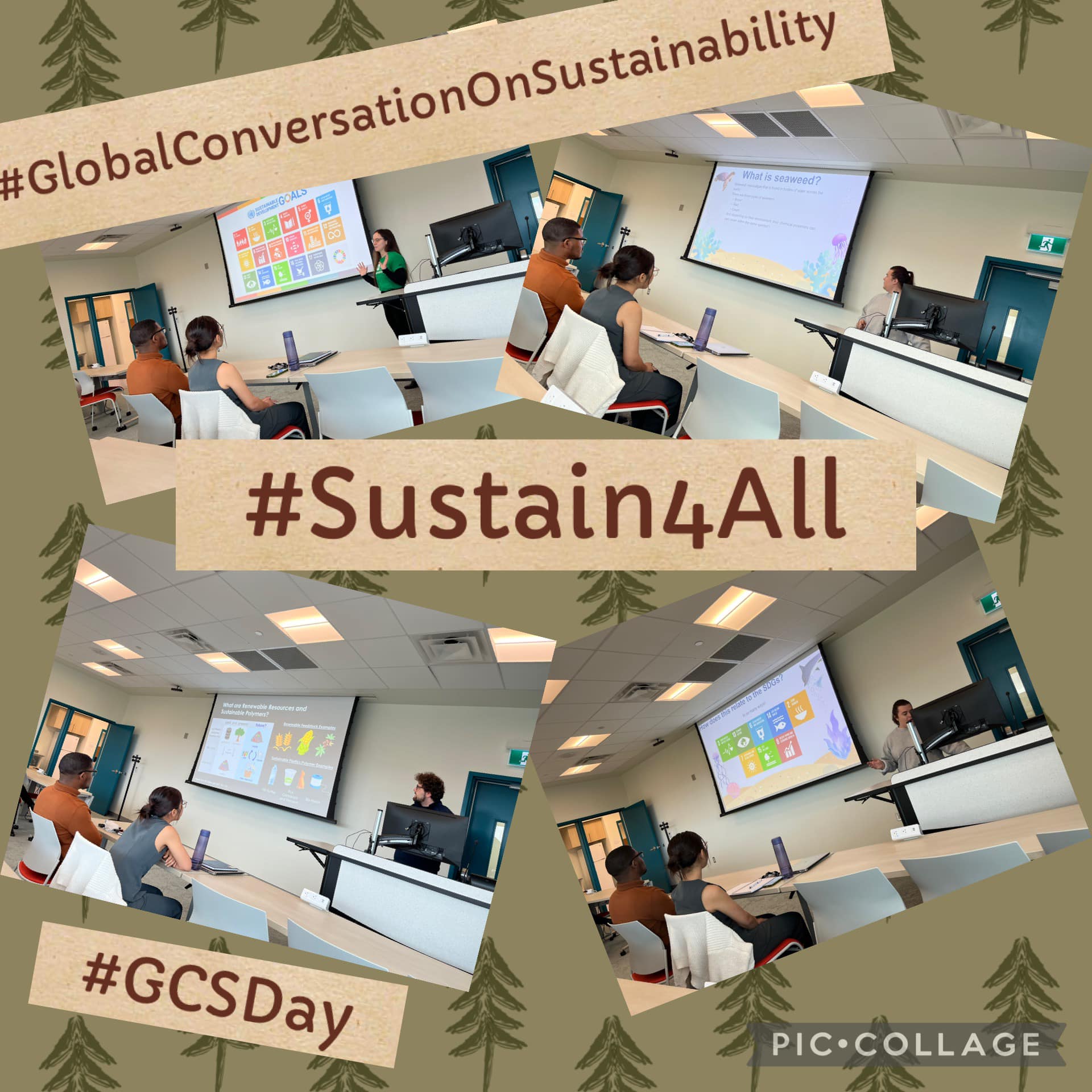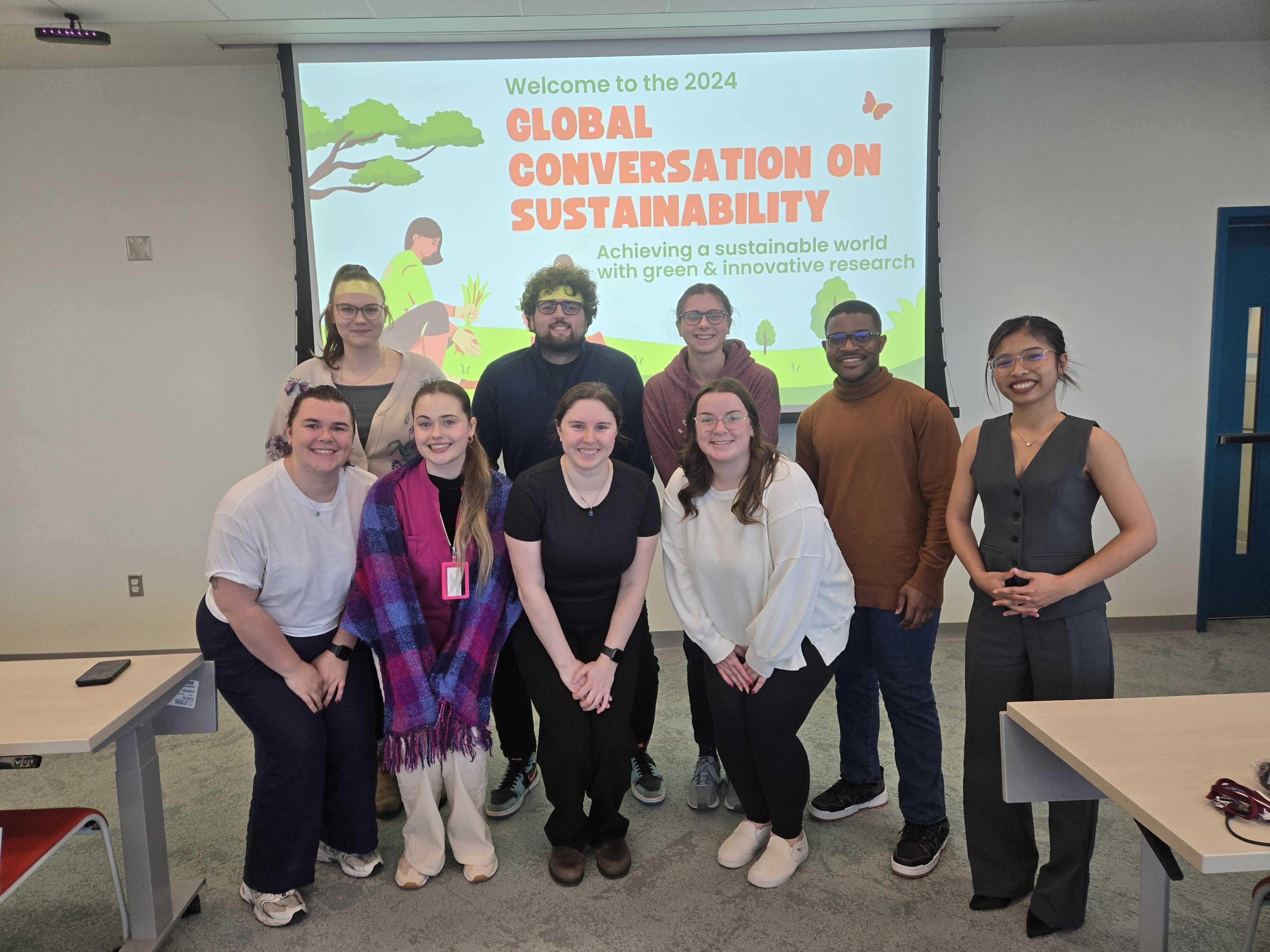 At the end of the month on September 25th, Sachel & Sarah co-organized this year’s Global Conversation on Sustainability! Multiple members of the lab presented their research as a 5 min talk, including Cyler, Olivia, Megan F., Megan G., Emily, and Kate. We really appreciate their participation in this year’s event 💚 Check out the post before this for some more pictures regarding the event!