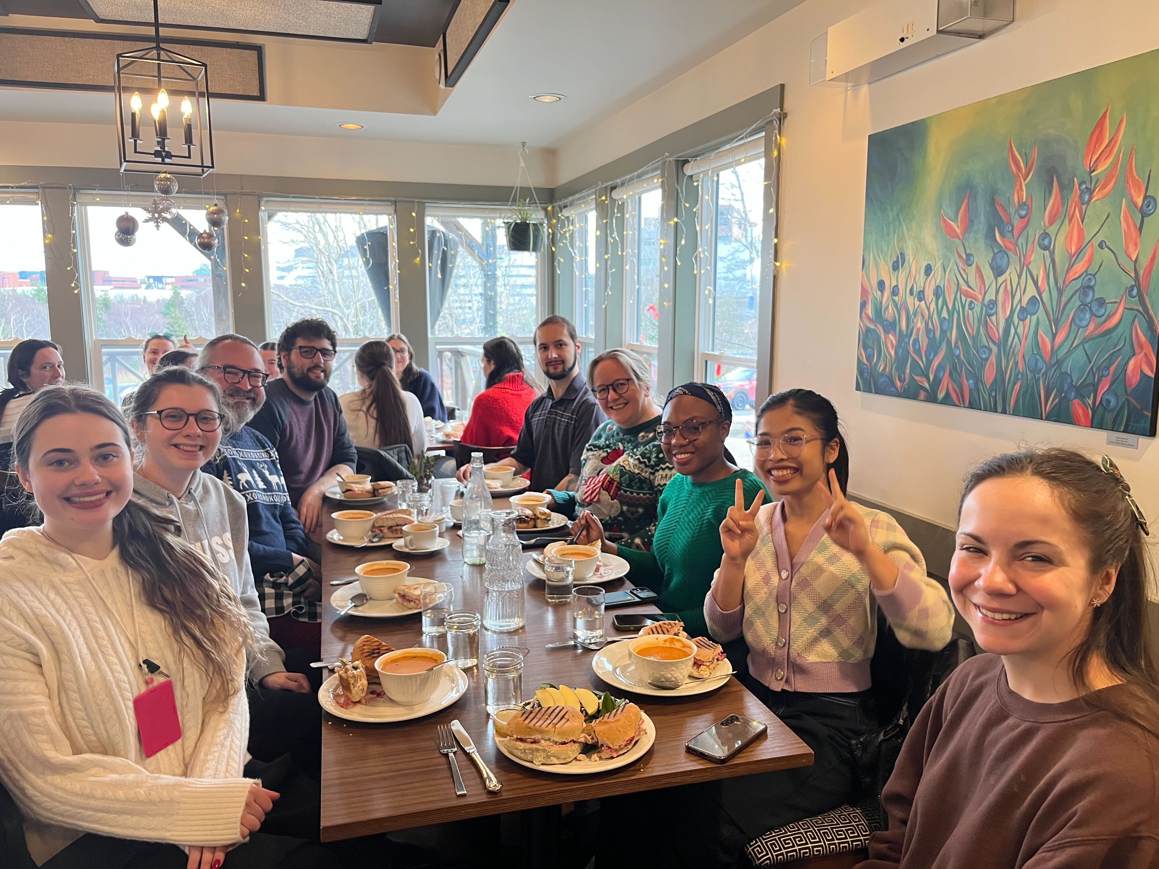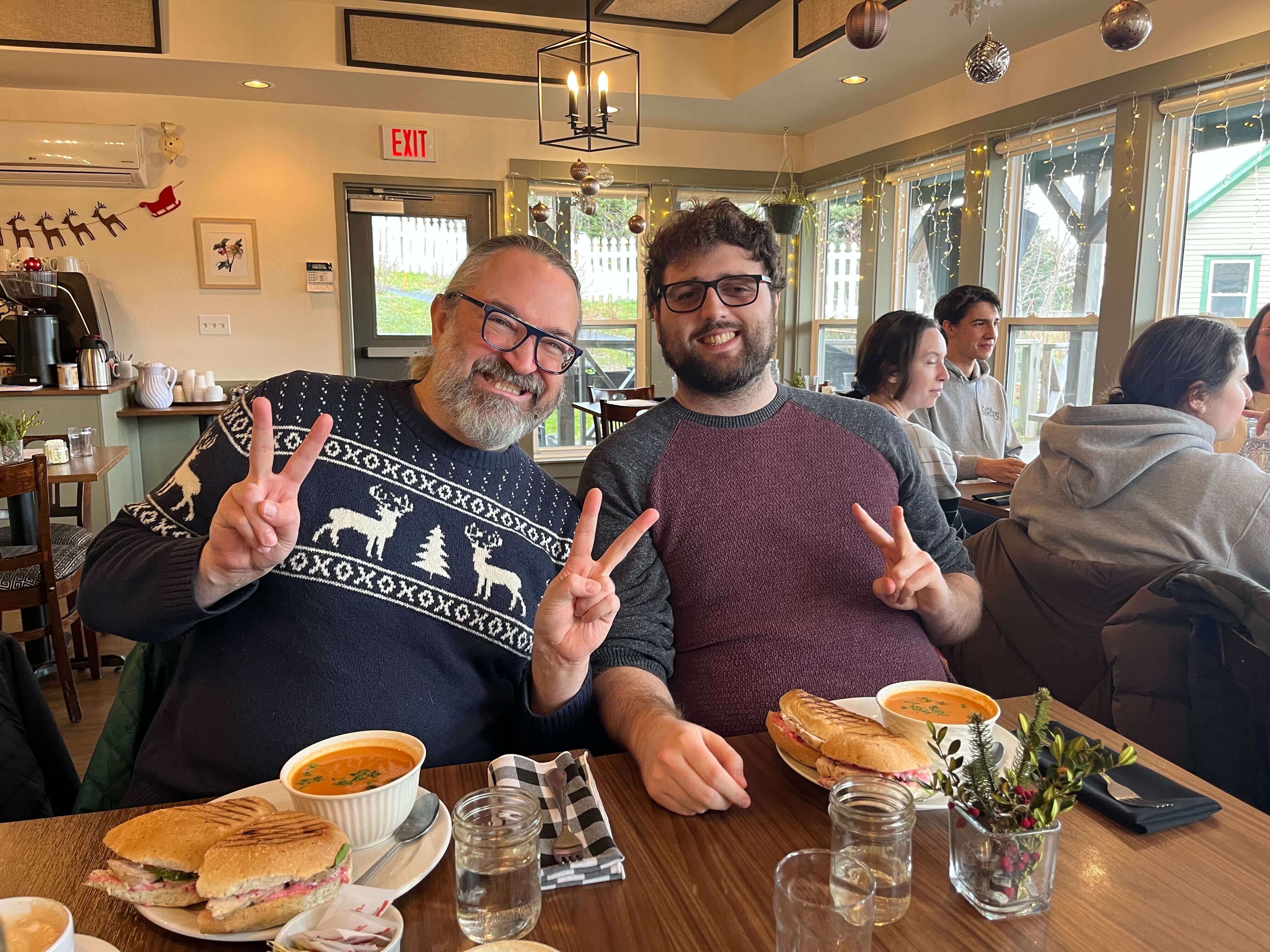 The next day, Fran and Chris invited us all to the Pantry for a holiday lunch! The paninis were really good and we look forward to visiting the Pantry again, a hidden gem that’s just a short walk behind the Core Science Facility.