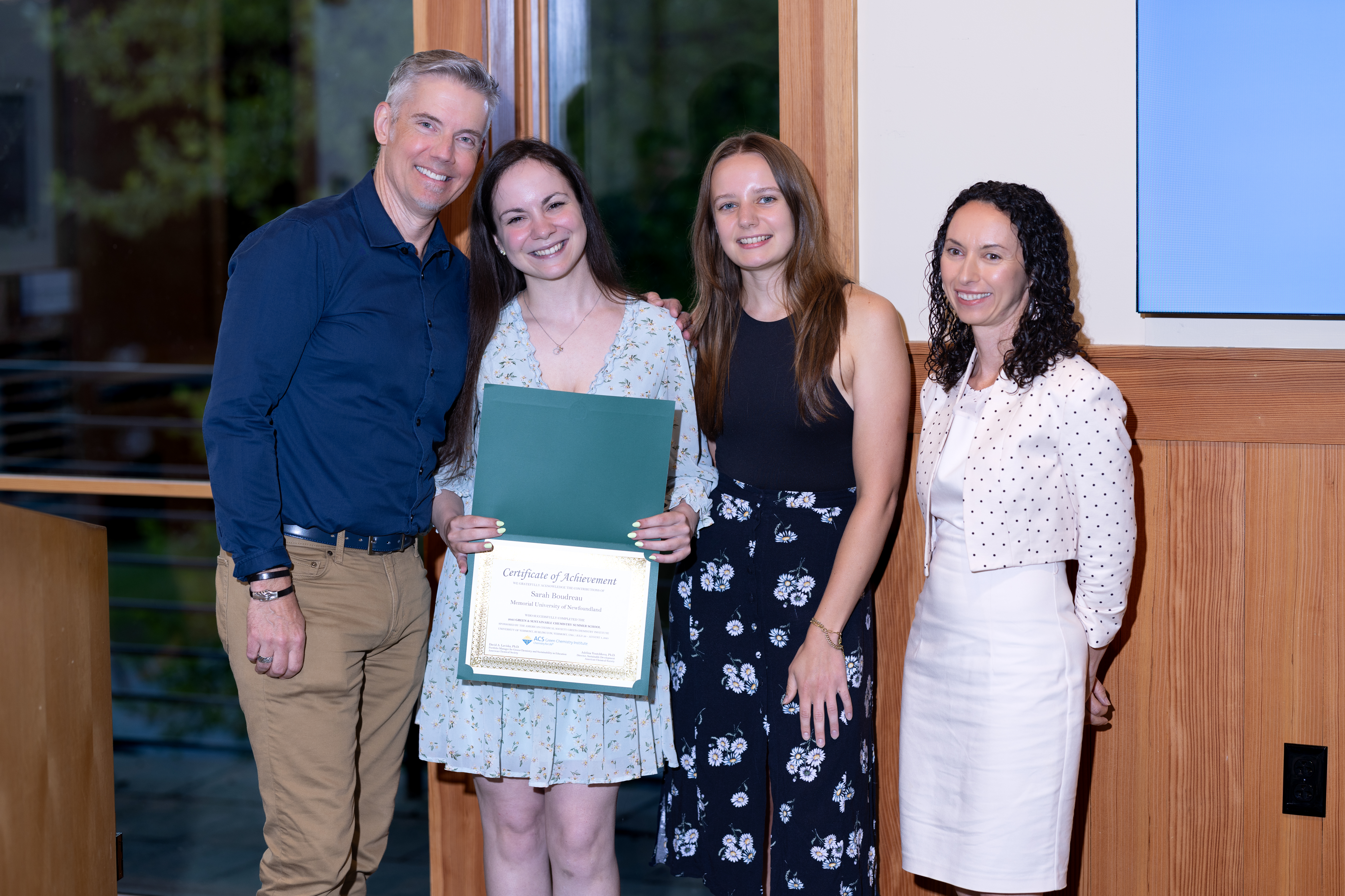 Sarah travelled to Burlington, VT for the ACS GCI Green & Sustainable Chemistry Summer School from July 26 to August 1, 2025. During this year’s summer school, multiple green chemistry topics were explored including metrics, green solvents, earth-abundant catalysis, renewable feedstocks, circularity, molecular design, and designing safer chemicals for healthy communities. She presented two research posters and a group presentation on 6PPD.