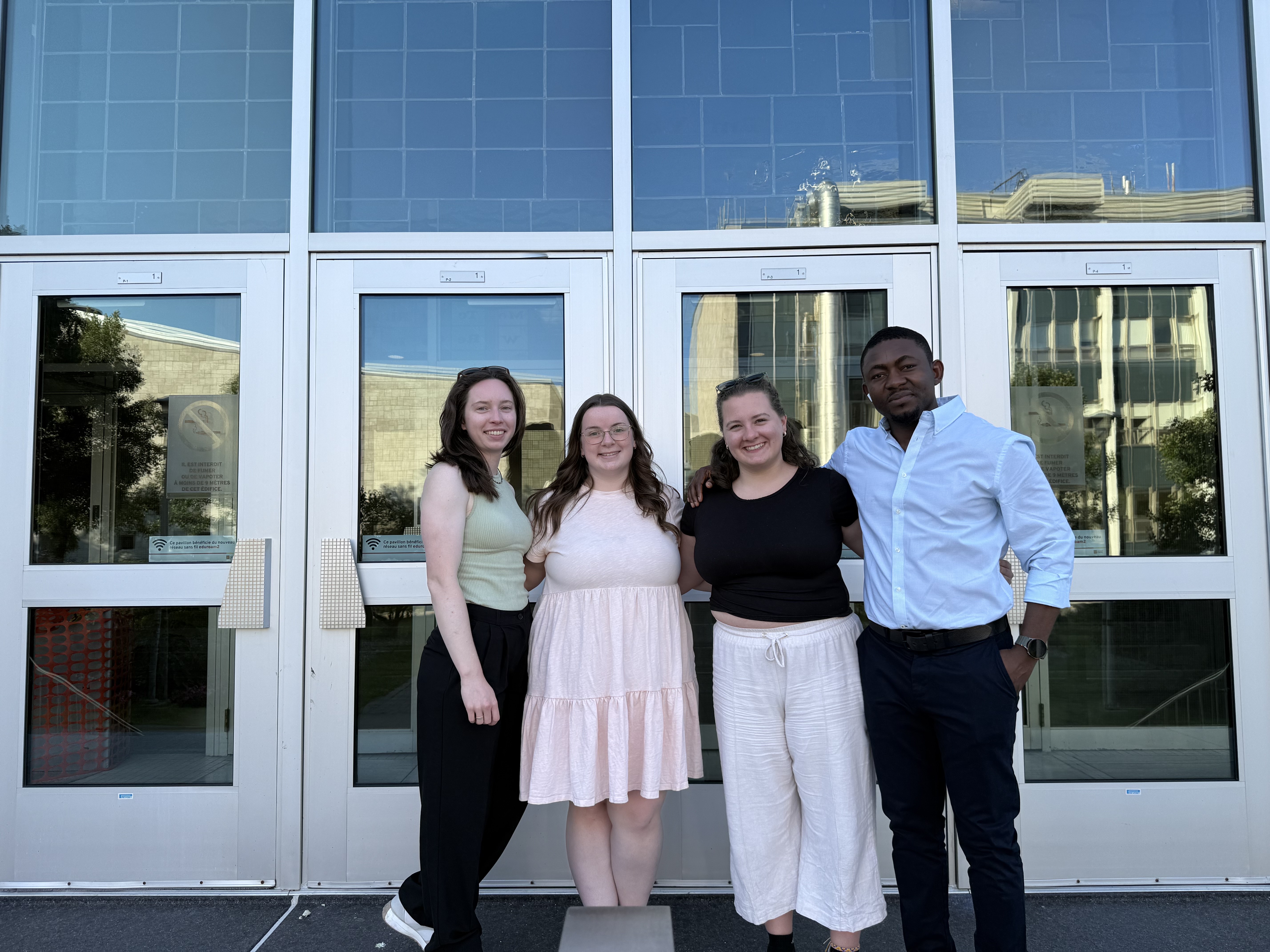 Mikhailey, Emily, Meghan, and Oforbuike Egbe attended the Centre for Innovation and Research on Carbon Utilization in Industrial Technologies (CIRCUIT) Summer School in Quebec City, QC where they presented research posters and learned about electrochemical CO2 systems, applications of AI models, and current achievements in CO2 electrolyzers.