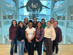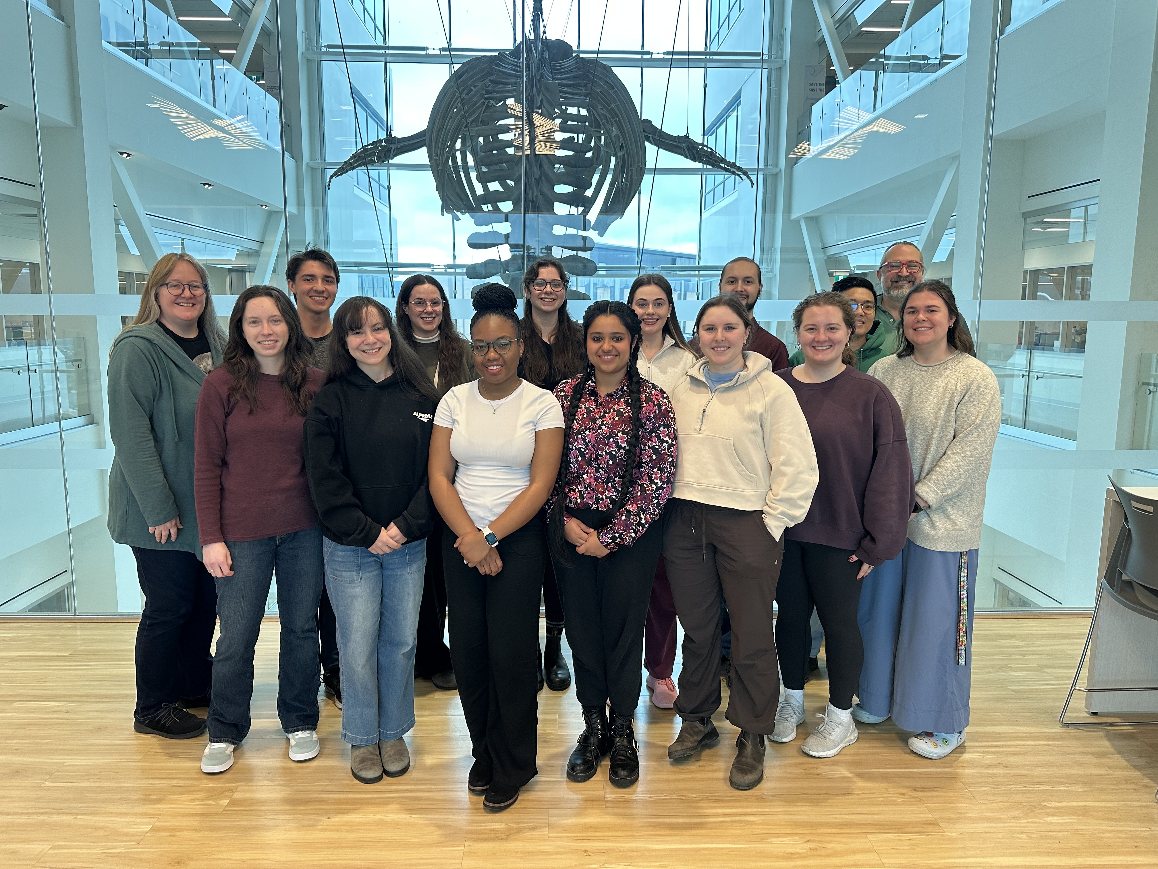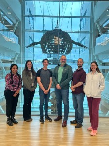 We realized that with several new graduate students joining the group this semester – it was time for a new photo….this time featuring our local blue whale in the background!