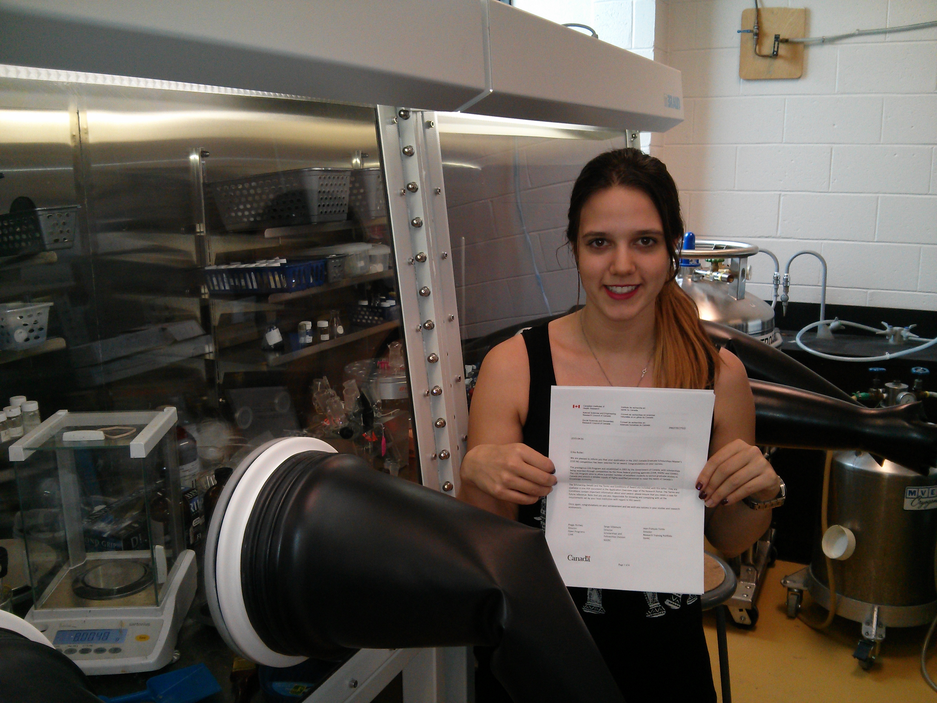 Congratulations to Erika on receiving an NSERC CGS-M scholarship!