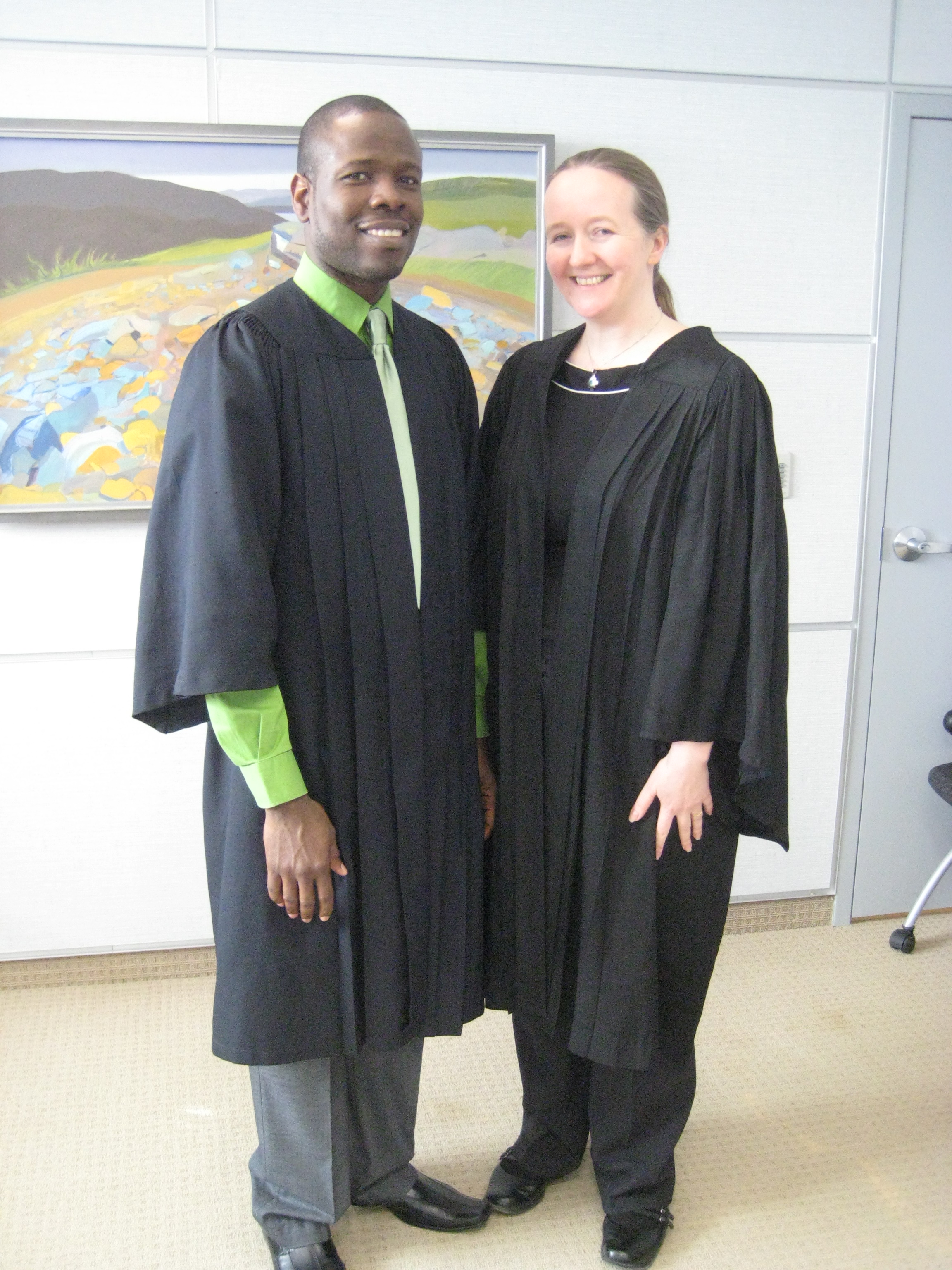 Nduka successfully defended his thesis yesterday afternoon. Thank you to everyone involved. The examiners: Parisa Mehrkhodavandi (UBC), Bob Davis (MUN) and Peter Warburton (MUN). The chair: Shirley Solberg (MUN). The staff in the School of Graduate Studies and the members of the chemistry department who came out to offer support incl. current and past supervisory committee members, Louise Dawe and Chris Kozak.