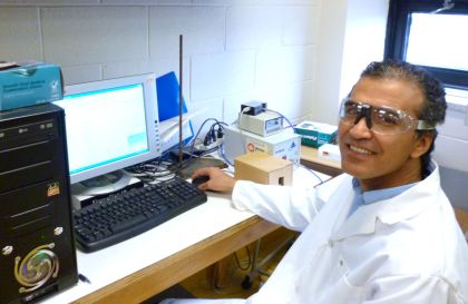 Ali busy working on the UV-Vis spectrometer