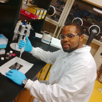 Kenson preparing samples for MALDI-TOF MS analysis in C5006