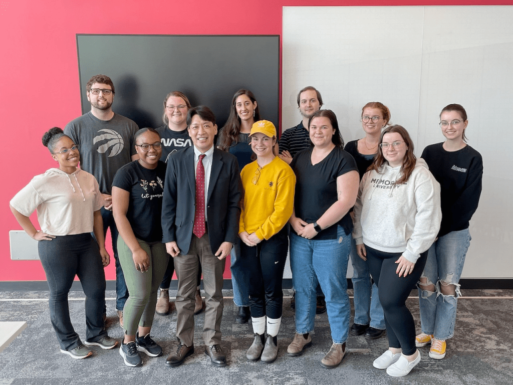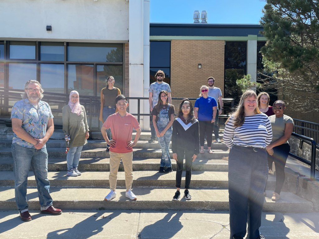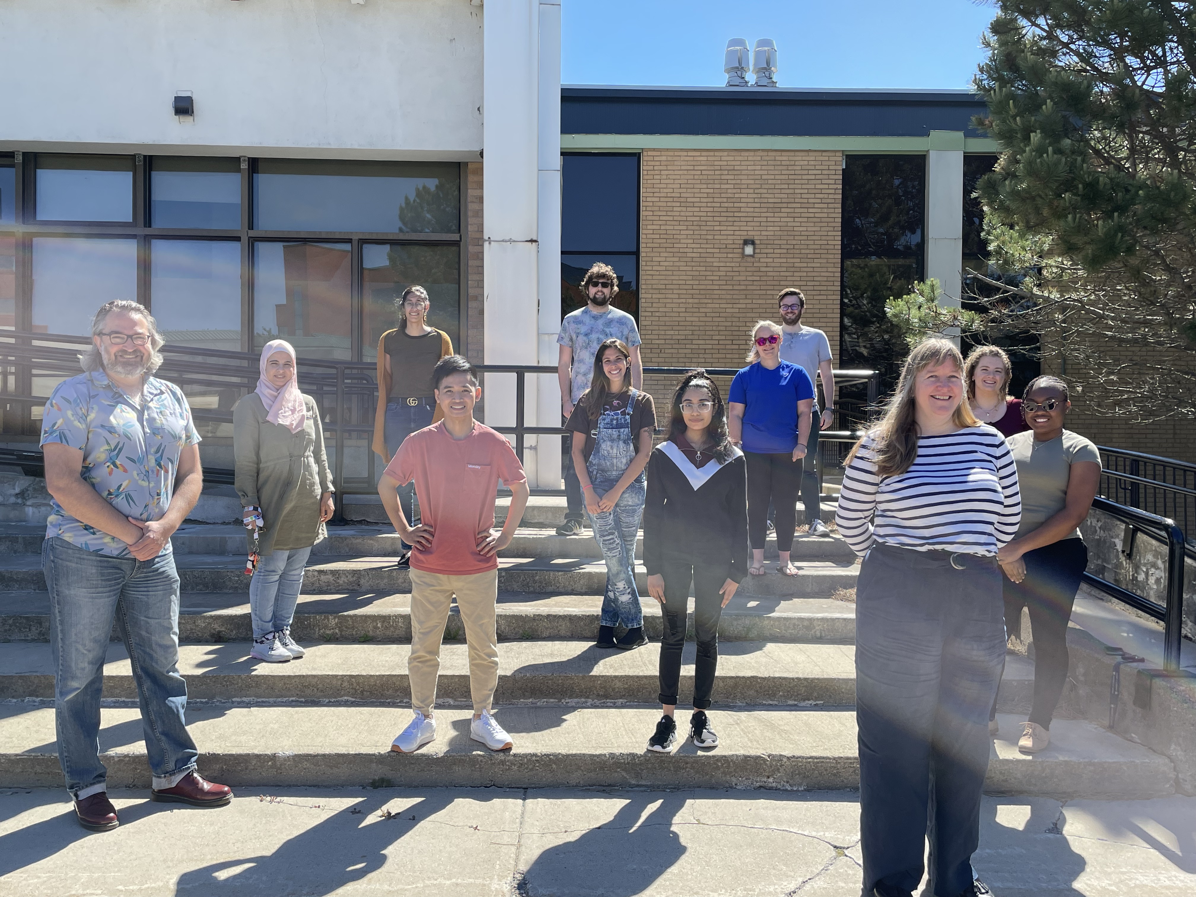 Time for a new photo before Kori begins her studies in Dentistry, Tim moves to Halifax to postdoc at Dalhousie and Ju moves to Montreal to postdoc at McGill. Lots of changes on the horizon including the move to the new Core Science Facility. We are on the steps of the Chemistry/Physics building today. They’ll be another photo soon as we are missing Matthew, Claire and Cloe this morning…..and a third in September when new MSc students arrive 🙂